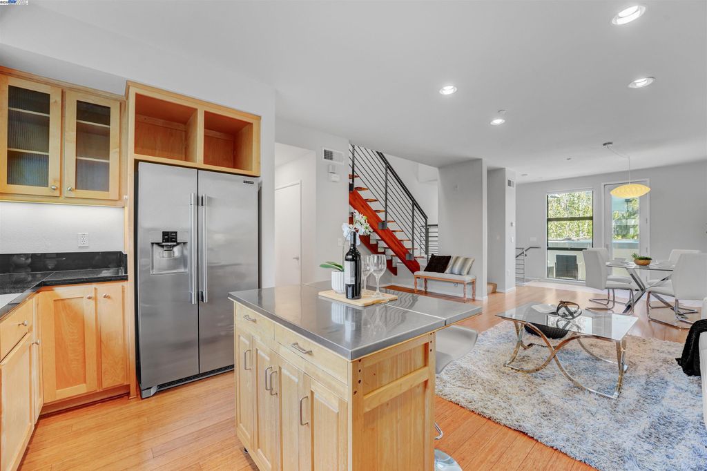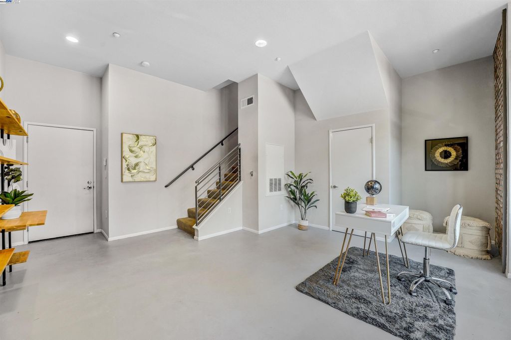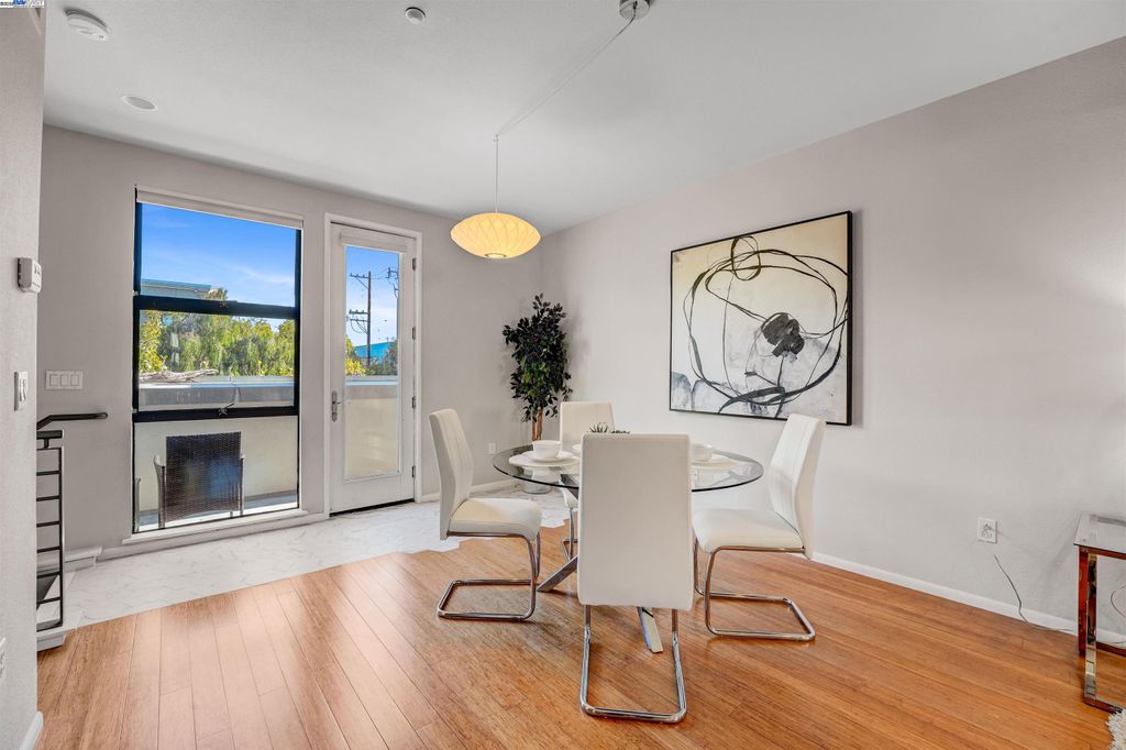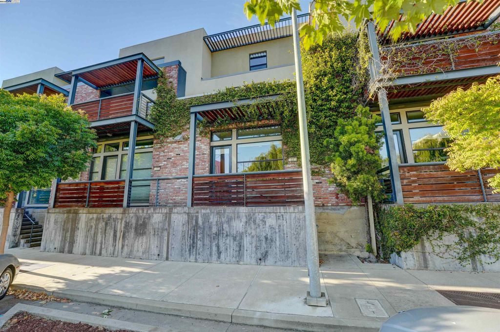 Industrial edge meets everyday comfort at 1220 66th St, a 2 bed, 2.5 bath, 1466 sqft townhouse-style condo with personality from the start. Walk in through the front door or garage and you're greeted by a flex space begging to be customized. Gym, art studio, office, or the kind of lounge you never want to leave, this space is all about options. The second floor brings the wow factor with bamboo floors, exposed brick, cement accents, and a bold wood-and-metal staircase. The open kitchen flows into a dining and living area filled with natural light, while a half bath and private deck keep things practical and social. Morning coffee, evening wine, or mid-day snacks, this level was built for it all. Upstairs, two ensuite bedrooms deliver privacy and style, while in-unit laundry saves you the laundromat hustle. Fresh paint keeps it crisp, a two-car garage with EV charging makes it future-ready, and a 90 Walk Score puts you steps from Aquatic Park, BART, Berkeley Bowl, coffee, restaurants, and easy freeway access. Trendy, versatile, and totally Emeryville.