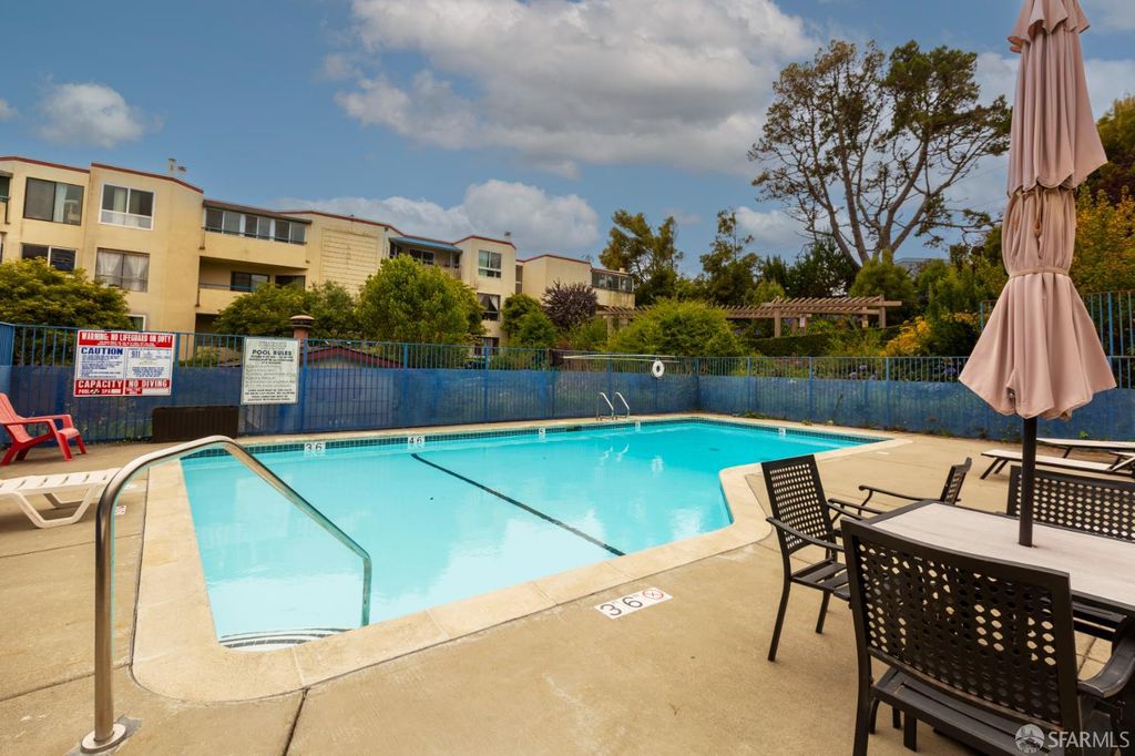 Welcome to this bright and well-maintained One Bed/One Bath condo in a highly desirable Daly City community. This comfortable home features an open layout with a spacious living area, a well-appointed kitchen, and a private balcony perfect for relaxing or entertaining. The generously sized bedroom offers a peaceful retreat along with a lovely bathroom. Enjoy resort-style living with amenities that include a swimming pool, sauna, fitness center, and clubhouse. This unit comes with two dedicated parking spaces which is a rare convenience in the area. This prime location is just minutes from Serramonte Shopping Center, Ranch 99 Market, Costco, restaurants, local businesses and easy freeway access! This condo offers the perfect blend of comfort and convenience. It is ideal for first-time buyers, downsizers, or investors. Don't miss this wonderful opportunity!