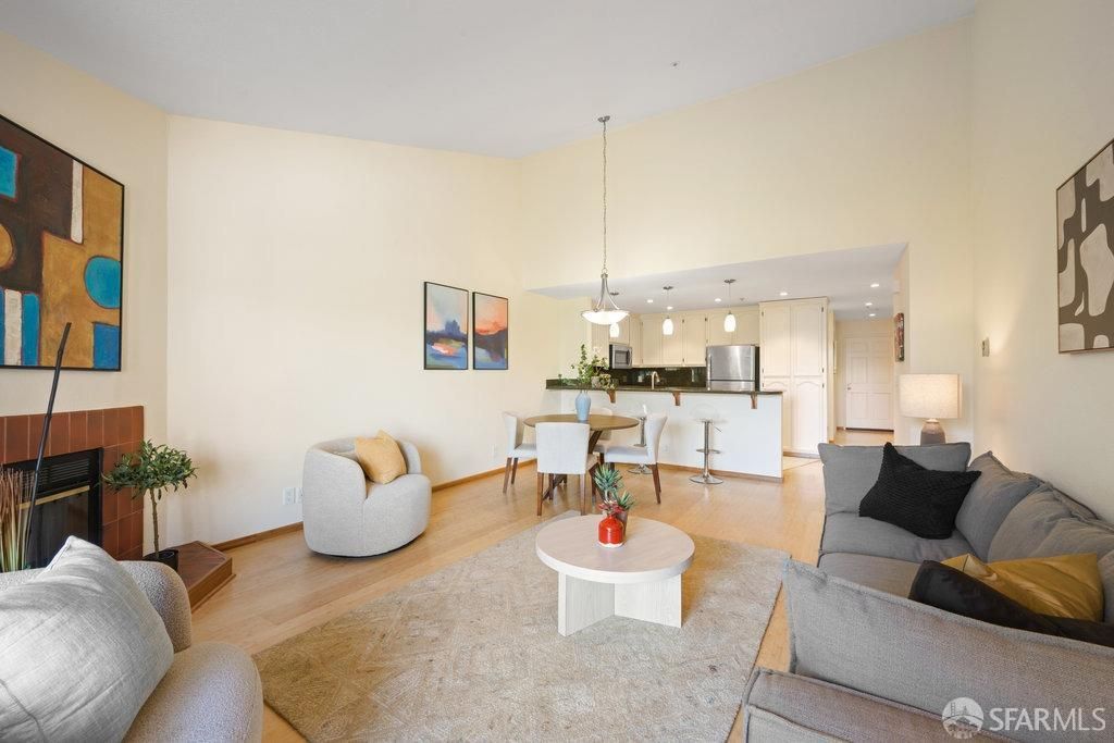 Discover tranquility just minutes from San Francisco in this serene, gated community. Rarely available, this expansive top-floor condo drenched in natural light offers 3 bedrooms and 2 bathrooms, and an open-concept living/dining/kitchen, ideal for entertaining family and friends. The chef's kitchen is equipped with stainless steel appliances, an abundance of cabinets, and a convenient breakfast bar. Gather around the cozy fireplace after dinner. Retreat to the grand primary bedroom, which includes en-suite, and direct access to the deck, enhancing the indoor-outdoor living experience. Two additional well-appointed bedrooms provide flexibility for guests, a home office, or family needs. Step onto your private deck to enjoy morning coffee while taking in stunning bay views, rolling hills, and sparkling city lights. A carport offers convenient 1-car parking, and additional guest parking in the uncovered parking spots. Just minutes from Muni express service to downtown SF and Highways 101/280.