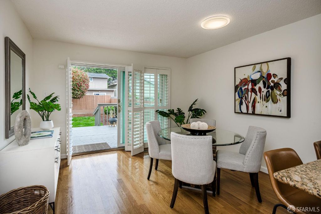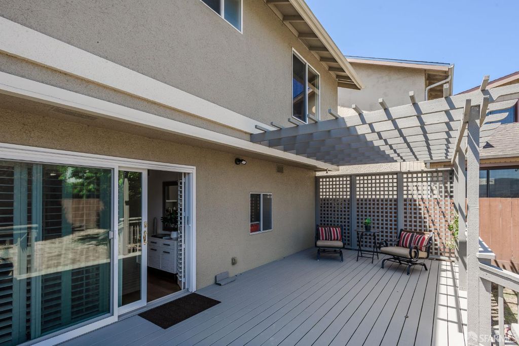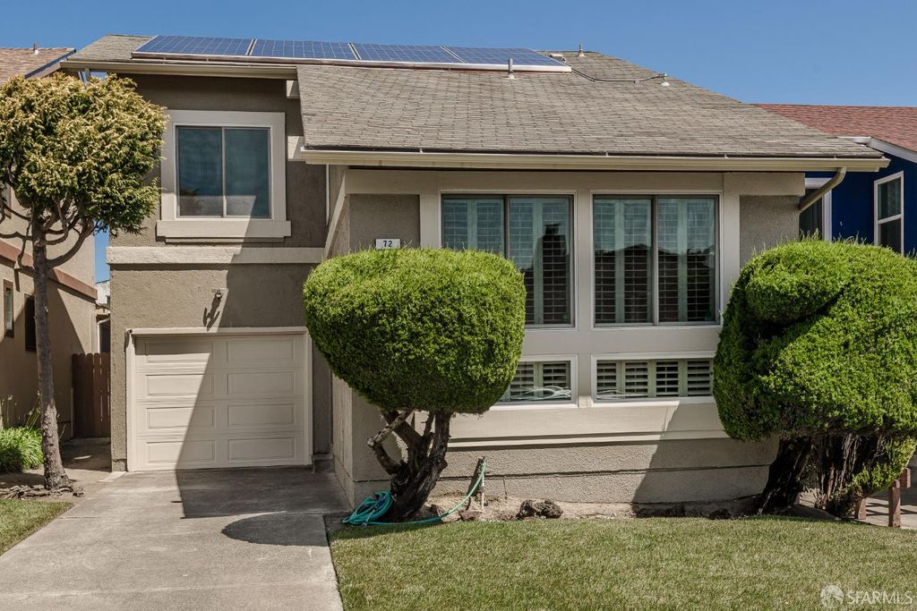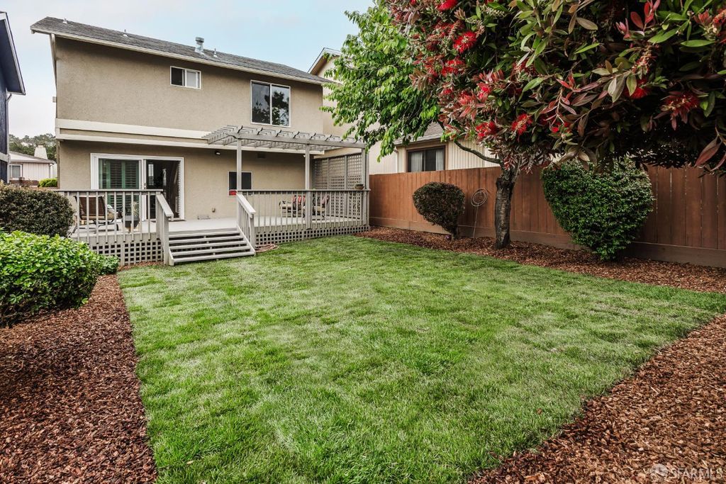 Step into this outstanding residence tucked quietly on one of the best cul-de-sac's in this stupendous Serramonte location. Beautifully upgraded throughout w/Custom Paint, New Double Paned Windows, Plantation Shutters & Gleaming Hrwd Floors. Enjoy entertaining in the Expansive FLR w/Vaulted Beam Ceilings & wonderful natural light. The Chef's Polished Kitchen is complimented w/Top-of-the Line Stainless Appliances, New Lighting, Granite Counters, Large Pantry & Custom Painted Cabinetry. Attractive Dining/Family Rm opens to the magical garden & flat green grassy backyard w/spacious deck perfect for BBQing & entertaining. A half BA powder room completes this level. Upstairs provides 3 generous BD's all w/Designer Closets. The grand & gracious Primary Suite w/Ensuite Remodeled BA can accommodate a sitting area and/or Home Office location. Spacious Closets allow for extra storage throughout. This terrific location provides approximately 1,420 Sq Ft of enchanting living space on a 3,463 Sq Ft Lot. 1 Car Garage Parking, Roof Solar Panels, W/D, & Sturdy Shelving allows for useful storage. This is a wonderful family home on a quiet & beautiful court close to Serramonte Shopping Mall, Gellert Park & Marketplace & I-280 Freeway for easy commuting. Easy to show by private appointment