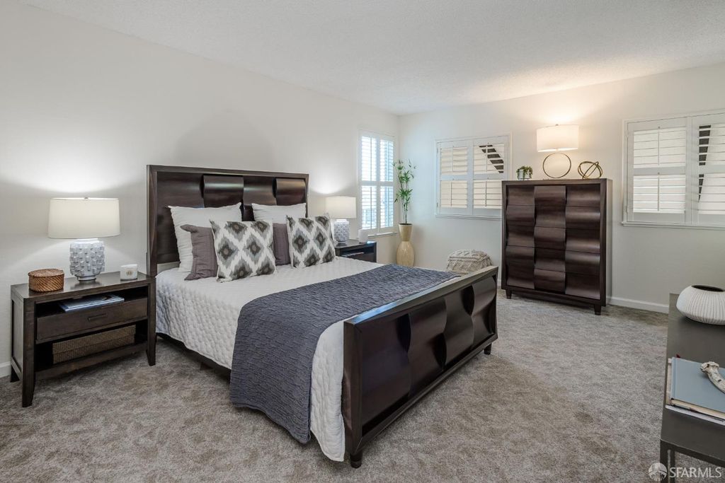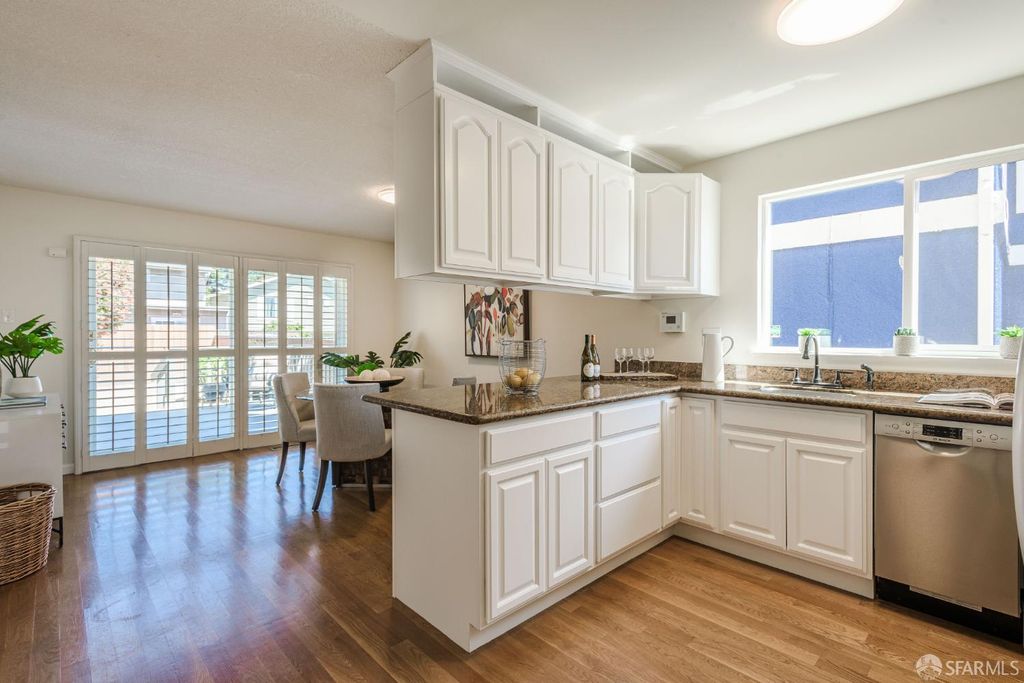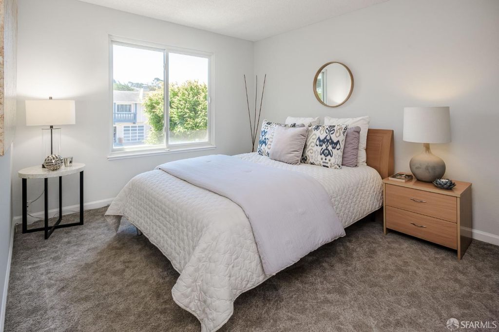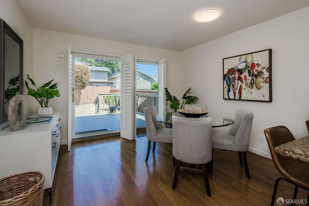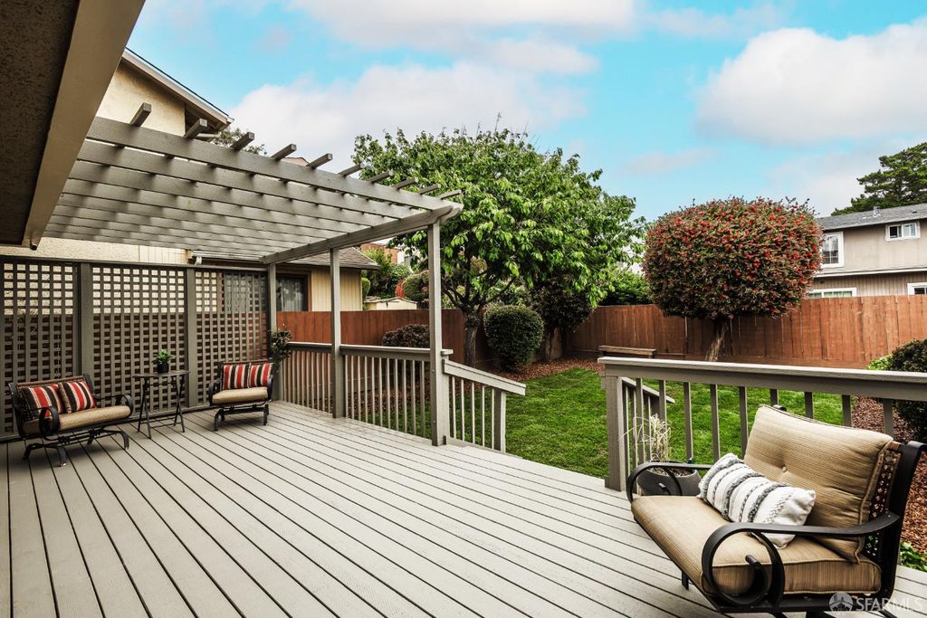 Step into this outstanding residence tucked quietly on one of the best cul-de-sac's in this stupendous Serramonte location. Beautifully upgraded throughout w/Custom Paint, New Double Paned Windows, Plantation Shutters & Gleaming Hrwd Floors. Enjoy entertaining in the Expansive FLR w/Vaulted Beam Ceilings & wonderful natural light. The Chef's Polished Kitchen is complimented w/Top-of-the Line Stainless Appliances, New Lighting, Granite Counters, Large Pantry & Custom Painted Cabinetry. Attractive Dining/Family Rm opens to the magical garden & flat green grassy backyard w/spacious deck perfect for BBQing & entertaining. A half BA powder room completes this level. Upstairs provides 3 generous BD's all w/Designer Closets. The grand & gracious Primary Suite w/Ensuite Remodeled BA can accommodate a sitting area and/or Home Office location. Spacious Closets allow for extra storage throughout. This terrific location provides approximately 1,420 Sq Ft of enchanting living space on a 3,463 Sq Ft Lot. 1 Car Garage Parking, Roof Solar Panels, W/D, & Sturdy Shelving allows for useful storage. This is a wonderful family home on a quiet & beautiful court close to Serramonte Shopping Mall, Gellert Park & Marketplace & I-280 Freeway for easy commuting. Easy to show by private appointment